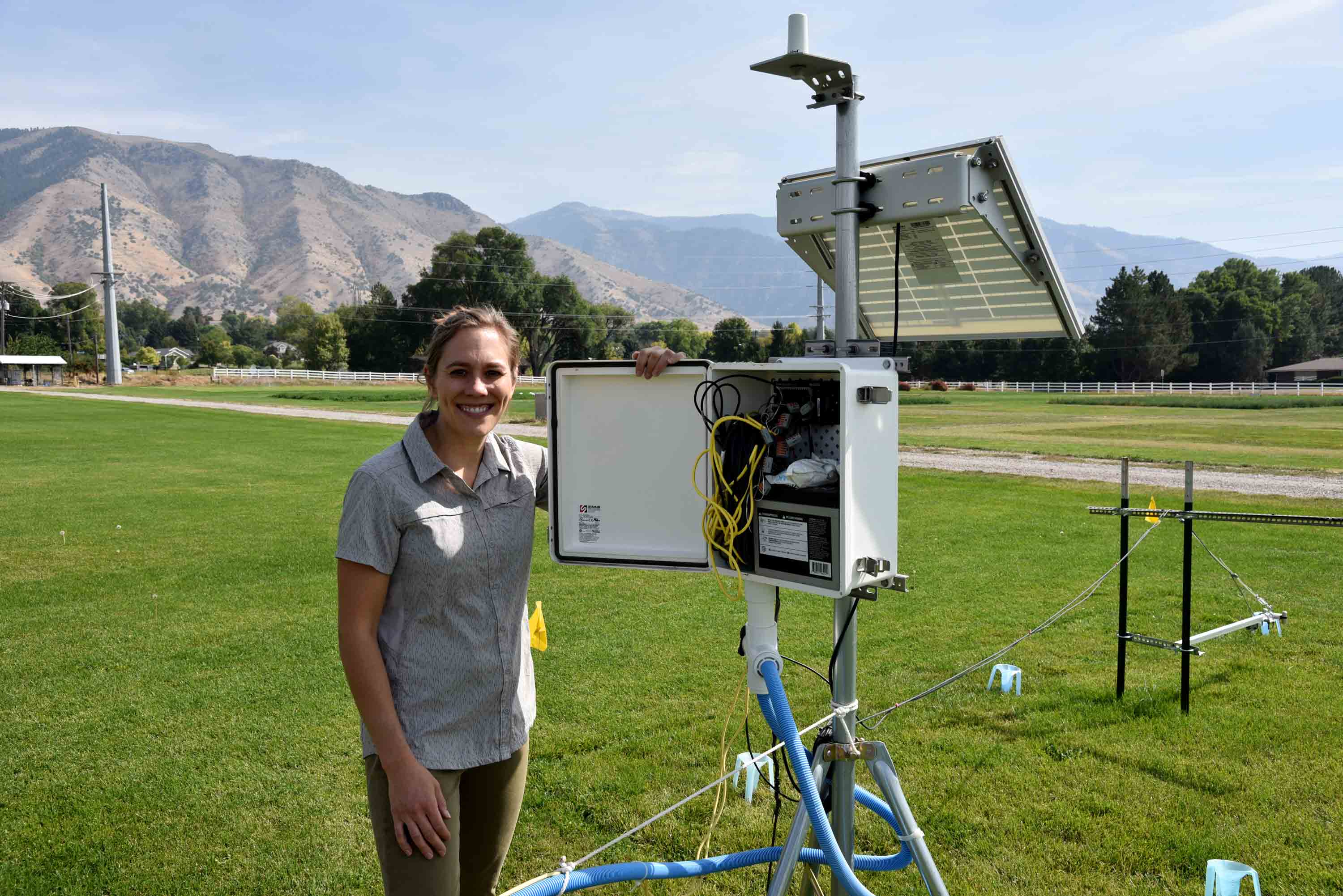 為了實現這一目標,我們建立了六塊相同的草坪地塊和六塊百日草切花(一種流行且具有代表性的城市園林作物)地塊,指定了灌溉時間處理,并配備了大量儀器來測量水-能量平衡。使用的遠地點傳感器包括用于測量表面和冠層溫度的紅外輻射計 (SI-411-SS)以及網絡輻射計 (SN-500-SS)測量輻射的四個分量并計算反照率。這些地塊還配備了空氣溫度和濕度傳感器、土壤濕度和溫度傳感器、灌溉流量計和收集杯,而該田地還設有由 USU 氣候中心管理的氣象站。現場每 15 分鐘總共自動進行 329 次測量,而每周 3 次手動收集 162 次測量結果。這項研究利用了 SDI-12 數字輸出,這是傳感器技術中最重要的進步之一,可以使用最少的數據記錄設備。