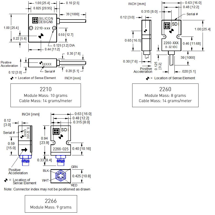 2210型號(hào)采用了標(biāo)準(zhǔn)的1英寸方形封裝,而2260和2266則是為適應(yīng)緊湊空間設(shè)計(jì)的小尺寸產(chǎn)品。其中,2210和2260配備了集成的3英尺電纜,2266則配置了可定制電纜長(zhǎng)度并方便重新定位的連接器。所有這三個(gè)型號(hào)都使用了密封且低噪音的SDI表面貼裝加速計(jì),并由SDI進(jìn)行了單獨(dú)的測(cè)試、編程與校準(zhǔn)。