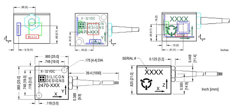 2470采用傳統的1英寸方形封裝,帶有集成電纜,操作方式與2476相同,2476采用連接器而不是集成電纜,可以快速安裝和拆卸,而無需改變電纜。2470和2476包括三個垂直安裝,密封,低噪音SDI 1522型表面安裝加速度計,在氣候室中單獨測試,編程,校準和驗證,以確保在熱揮發條件下的最大精度。2470和2476包括詳細說明測試性能數據的初始校準報告。