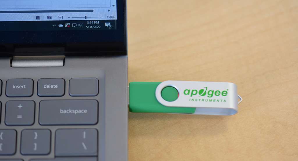 AC-100 電纜能將記錄在 Apogee 手持式儀表上的數據下載到計算機上。電纜內裝有電子設備,可將儀表的信號轉換為計算機可識別的 USB 信號。普通的 USB 電纜不適用于儀表。ApogeeAMS 軟件(Windows 兼容,XP 及更高版本;Mac 兼容,10.10 及更高版本)用于將 Apogee 儀表與計算機連接。