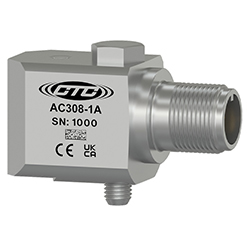 高溫IEPE加速計,最高溫度325°F(162°C),頂部出口2針連接器,100 mV/g,±10%