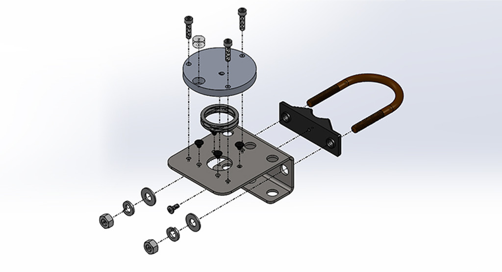 AL-120 安裝支架: 帶水平板的 AL-120 太陽能安裝支架設計用于將 Apogee Instruments 的總輻射表、總輻射表、量子傳感器、紅色-遠紅外傳感器、PAR-FAR 傳感器和紫外線傳感器安裝到桅桿或管道上外徑為 1.3" - 2.1"。