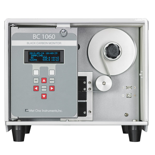 我們的 BC-1060 便攜式炭黑監(jiān)測器可在紫外線 (370 nm) 和紅外 (880 nm) 照明波長下測量和報告炭黑濃度,用戶可選擇的時間分辨率低至一分鐘。便攜性和雙波長照明的結(jié)合允許快速、輕松地大規(guī)模部署,用于源解析(化石燃料與生物質(zhì)燃燒)確定、路邊監(jiān)測和應(yīng)急響應(yīng)應(yīng)用。BC-1060 可以使用一卷玻璃纖維膠帶連續(xù)采樣長達(dá) 6 個月。