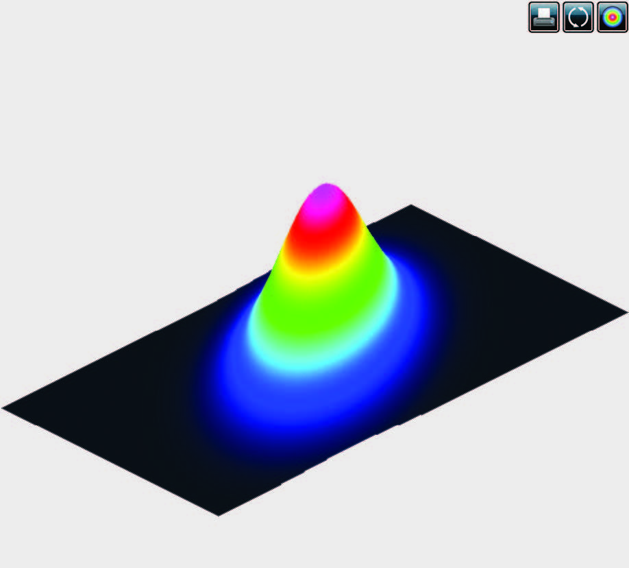 三維顯示屏 —— 三維顯示屏可顯示光束的實際形狀,可輕松對圖像進行縮放、移動和旋轉。重置按鈕非常有用,可允許用戶將數據返回原始配置。此顯示屏還帶有一個可以 BMP 格式保存最后圖像的打印屏幕按鈕。