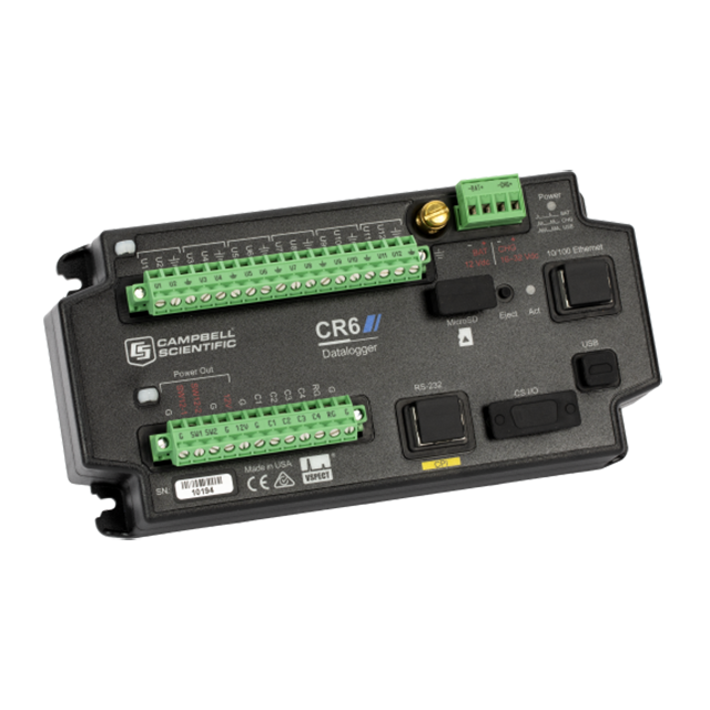 CR6 測量和控制數據記錄器是數據采集系統的強大核心組件。CR6 數據記錄器提供快速通信、低功耗要求、內置 USB、緊湊的尺寸以及高模擬輸入精度和分辨率。它使用通用 (U) 端子允許連接到幾乎任何傳感器——模擬、數字或智能。這種多用途數據記錄器還能夠進行靜態振弦測量。