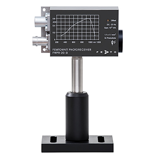 FWPR-20 系列光接收器將低噪聲 Si 或 InGaAs PIN 光電二極管與專門設(shè)計(jì)的跨阻放大器相結(jié)合,具有高達(dá) 1012 V/A的高增益和低噪聲。由于其 0.7 fW/√Hz 的極低 NEP,這種獨(dú)特的組合產(chǎn)生了具有飛瓦靈敏度的光接收器。可以直接檢測(cè)低至約 50 fW 的光功率。結(jié)合可選的 FEMTO 鎖相放大器,甚至可以檢測(cè)亞飛瓦范圍內(nèi)的功率水平。