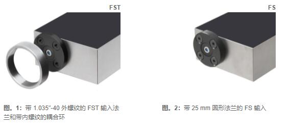 兼容光學(xué)平臺(tái)(自由空間)和光纖自由空間輸入設(shè)計(jì)為帶螺紋耦合環(huán)的 1.035"-40 螺紋法蘭 (FST) 或無(wú)螺紋的 25 mm 圓形法蘭 (FS)。這兩種類型都與來(lái)自不同制造商的光學(xué)配件廣泛兼容,例如透鏡、管、籠式系統(tǒng)、光學(xué)適配器等。