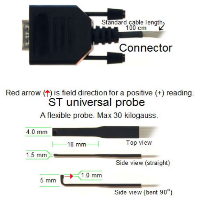 ST 通用探頭是一種靈活的探頭,可與GM2 型高斯計一起使用。