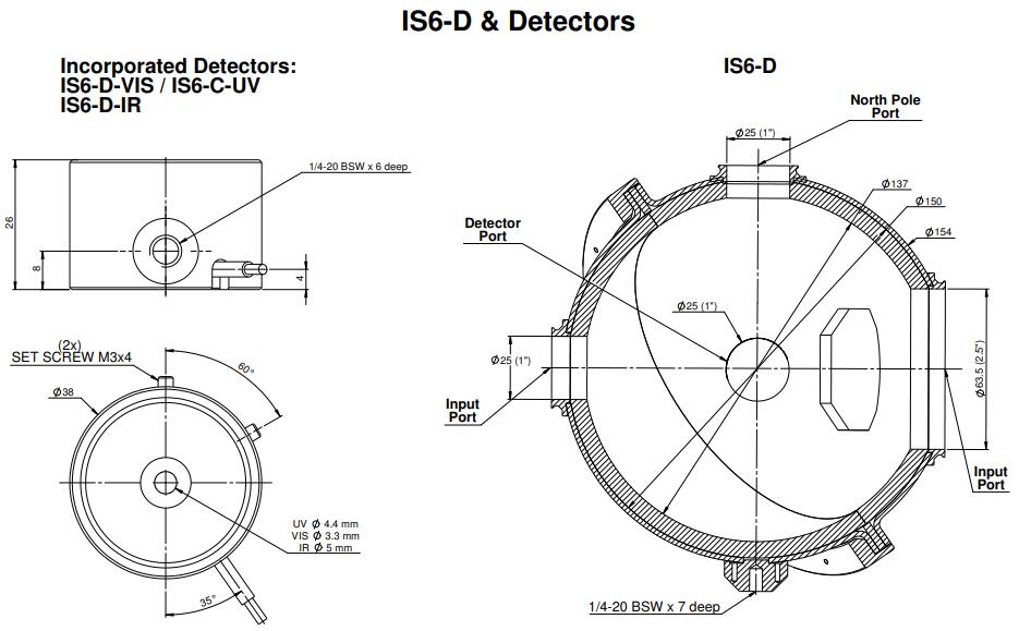 IS6-D-UV 是一個 6 英寸積分球(內部 5.3 英寸),帶有用于發散 (D) 光束的硅探測器。IS6-D-UV 配有紫外線檢測器,校準范圍為 200 至 1100nm,可測量高達 1W 的功率。