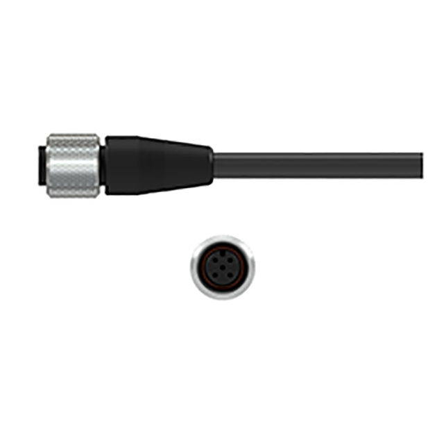 5 插座 M12、PPS 插入件、密封緊密 Viton® 護套連接器,與 4 芯電纜一起使用,長久安裝,350 °F (177 °C) 最高溫度