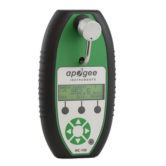 MC-100 可直接測(cè)量和顯示完整葉片樣品中的葉綠素濃度,而不會(huì)損壞植物材料。該儀表經(jīng)過校準(zhǔn)以測(cè)量葉綠素濃度,單位為 μmol 葉綠素/m2。出于參考和比較目的,儀表還輸出相關(guān)單位(CCI 或 SPAD)。
