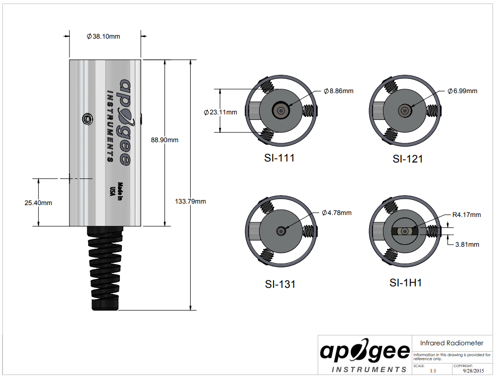 MI-210有一個通過電纜連接的手持式儀表,用于顯示和存儲傳感器測量值。該傳感器具有22°半角度視場,響應時間為0.6秒。典型的應用包括用于植物水分狀況估計的植物冠層溫度測量、用于確定結冰條件的路面溫度測量以及用于能量平衡研究的地表(土壤、植被、水、雪)溫度測量。