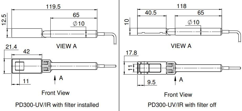 PD300-UV 是一種寬光譜范圍的光電二極管激光測量傳感器。它有一個 10x10mm 的孔徑,帶有旋轉支架和一個可拆卸的過濾器。不帶濾光片時,其光譜范圍為200-1100nm,功率測量范圍為20pW-3mW。帶濾波器的光譜范圍為 220nm 至 1100nm,功率范圍為 2μW 至 300mW。該傳感器帶有一根 1.5 米長的電纜,用于連接到儀表或 PC 接口。