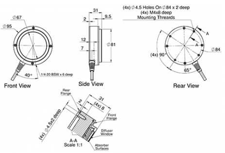 PE80BF-DIF-C是一種熱釋電能量計,帶有聚光束漫射器。孔徑為67mm,可以測量4mJ至40J的能量。它可在不超過250Hz的重復頻率下工作,覆蓋0.19-2.2,2.94μm的光譜范圍。探頭配有1.5米長的標準電纜,用于連接儀表或PC適配器。