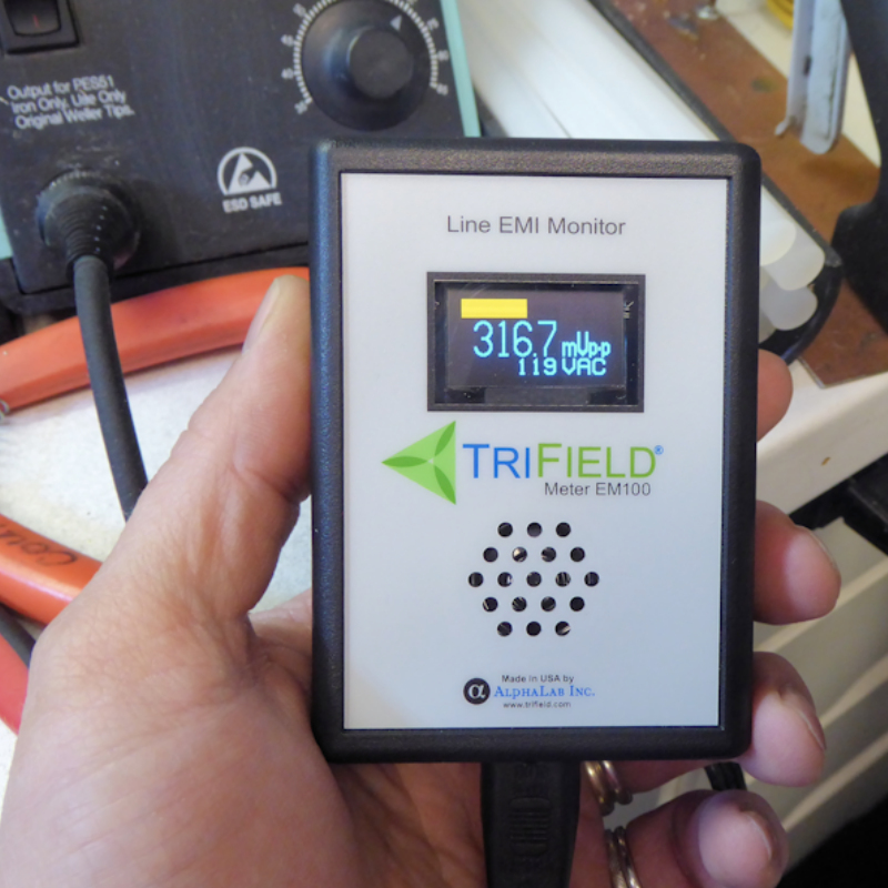 線路電磁干擾測量儀測量單相交流電源線的電磁干擾。它插入墻上的插座(電源插座) ,不需要電池。在10KHz-10MHz (靈敏度為最大靈敏度1.2倍的頻率限制)的頻率范圍內,它立即以毫伏峰值到峰值(范圍1999.9 mVp-p,分辨率0.1 mVp-p)顯示總線噪聲。揚聲器播放電磁干擾的聲音,振幅解調,以識別電磁干擾源(如調幅或短波廣播電臺相對于電機相對于電弧)。