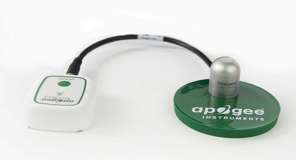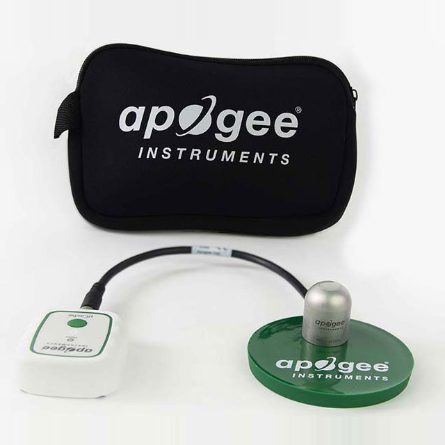 PP-500 封裝包括一個帶 30 厘米電纜的SP-510-SS 上視熱電堆日射強度計傳感器頭、一個microCache 藍牙微型記錄器、一個AA-090 氯丁橡膠保護套、一個額外的2545 microCache 電池和一個AM-020 Apogee PVC傳感器平臺。配對后,這兩個設備是監測光合有效輻射 (PAR) 的強大工具,具有非常高的精度,可實現良好植物生長。