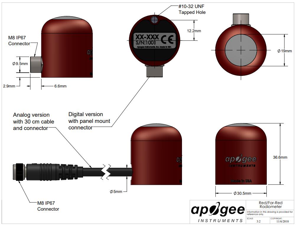 S2-432 紅色 - 遠紅外傳感器使用 Modbus RTU 協議通過 RS-232 和 RS-485 輸出數字信號。該傳感器采用堅固的鋁制外殼,可完全浸入水中,可承受惡劣條件,并采用預鍍錫尾纖引線的高質量電纜端接,可輕松連接到數據記錄器和控制器。傳感器電纜包括一個 IP68 航海級不銹鋼電纜連接器,以簡化從持久安裝中拆卸和更換傳感器以進行維護和校準的過程。典型應用包括測量生態應用的紅光/遠紅光比 (RFR),包括光譜質量對光敏色素的影響。RF 比率會影響植物高度、葉片展開率以及其他光生物學和植物形態發生反應。