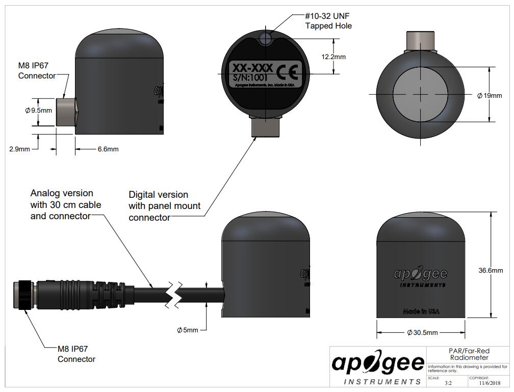 S2-442 PAR-FAR 傳感器是一種獨特的雙通道數字傳感器,用于使用 Modbus 通信協議測量電動植物生長燈的 PAR (PPFD) 和遠紅光輸出。該傳感器采用堅固的鋁制外殼,可完全浸入水中,可承受惡劣條件,并采用預鍍錫尾纖引線進行高質量電纜端接,可輕松連接到數據記錄器和控制器. 傳感器電纜包括一個 IP68 航海級不銹鋼電纜連接器,以簡化從持久安裝中拆卸和更換傳感器以進行維護和校準的過程。PAR-FAR 傳感器的典型應用包括測量傳統的 PPFD 光合光子通量和單獨量化遠紅外光子 (700-750 nm) 的光子通量。輸出包括傳統的量子通量、遠紅光子通量和遠紅部分(遠紅光子通量密度/PPFD 和遠紅光子通量密度之和)。該傳感器量化遠紅光子,對于許多應用,它減少了使用光譜輻射計進行更復雜測量的需要。