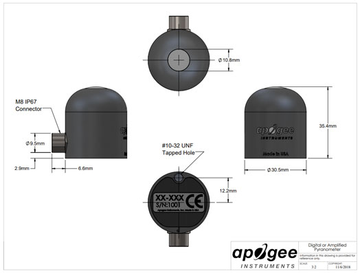 日珥計是測量全球短波輻射的傳感器。Apogee SP系列日冕計是硅電池 日冕計只對太陽光譜的一部分敏感,大約350-1100納米 (大約80%的短波輻射都在這個范圍內)。然而,硅電池熱量計是 校準以估計整個太陽光譜的總短波輻射。硅光電池日射強度計 與氣象組織(WMO)的中等和良好的質量分類和規范為國際標準化組織(ISO) C類 分類時,但由于光譜靈敏度有限,它們不符合必要的光譜規范氣象組織認證。