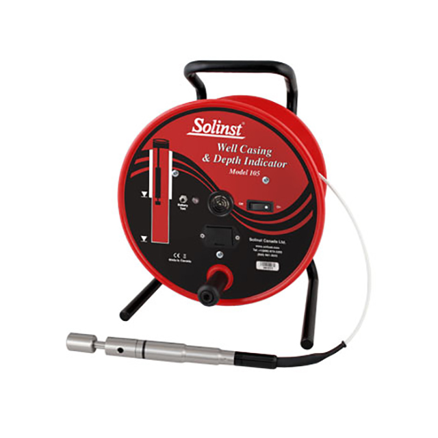 Solinst 105型套管和深度指示器可檢測金屬套管,并使用一個探針測量總井深。井套管和深度指示器是確定新結構或現有結構中金屬套管端部和起點的理想選擇,在安裝井下儀器時很有用,在測量井深時使用簡單。探針中的強磁性組件檢測油井套管,而探針底部的柱塞組件則發出井深信號。