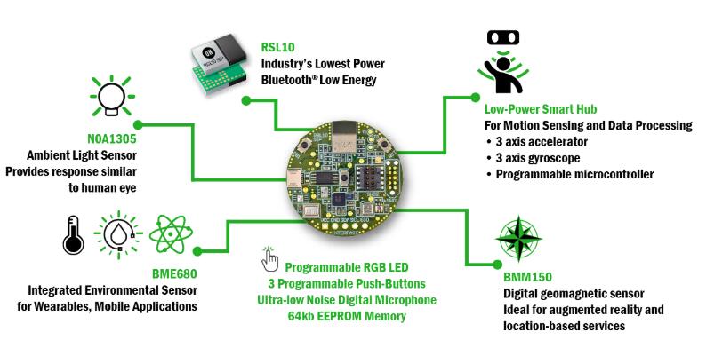 Wireless and sensor technologies combined with power optimization can enable a variety of new applications for the Internet of Things (IoT). The RSL10 Sensor Development Suite enables this technology with a multi-sensor, Bluetooth low power platform that uses the industry's lowest power Bluetooth low power radio RSL10 SIP(system level Package). The combination of sensor technology and Bluetooth low power radio enables the development of sensor edge nodes with long battery life devices for a variety of applications. With this platform, the hope is to speed up the development time to create node-to-cloud IoT solutions, better helping developers and design engineers.