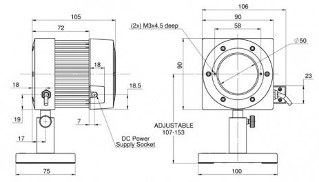 | Dimensions | 90 L x 90 W x 105 D (mm) |