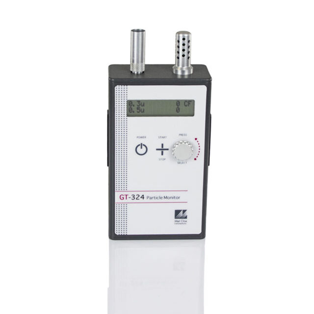 Met One Instruments, Inc.’s Model GT-324 particle counter is a full-featured handheld particle counter that provides the functionality of a bench unit in a portable package. A fully integrated RH/Temp sensor immediately provides data to your displayed and logged data. A convenient unit for compliance, the user interface is simple with the multifunction rotary dial. Comply with 21 CFR Part 11 using the password feature to prevent unauthorized changes to user settings. Unit is 21501-4 compliant capable. All new units include a NIST traceable certificate of calibration and the upgraded Particle View software package. Particle View now features additional reports, alarms, charts, and conversions for improved data analysis. The 324 has seven selectable sizes; 0.3, 0.5, 0.7, 1.0, 2.5, 5.0, and 10.0 microns, of which the operator can choose any 4 of the particle sizes of interest. The GT-324 is suitable for many applications, including but not limited to Cleanroom Monitoring, Controlled Environments, Filter Testing, Compliance Testing, Process Control, Indoor Air Quality, HVAC Applications, QA Programs, etc.