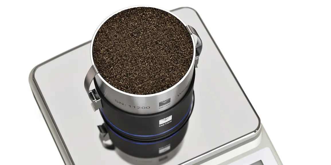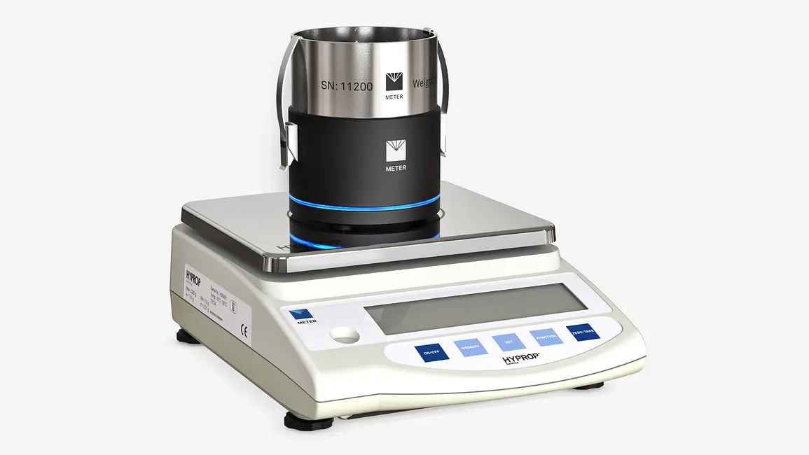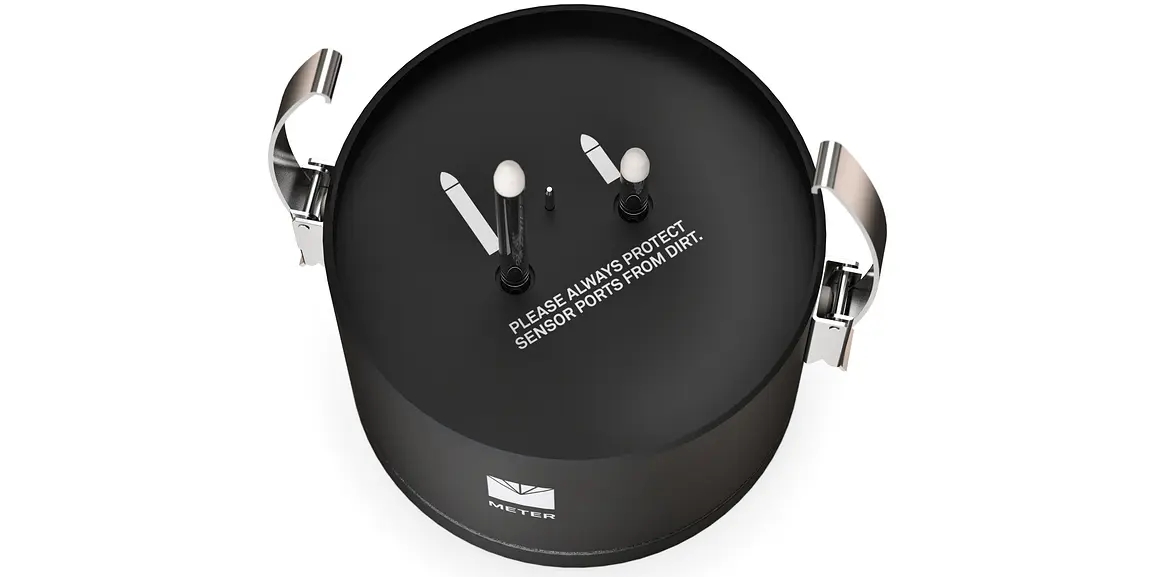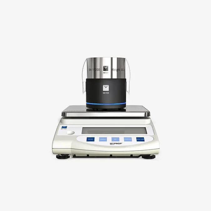 Tensiometers are positioned upside down in the soil sample (undisturbed evaporation and no impact on the tensiometer shafts)