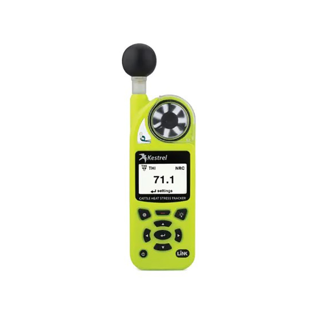The Kestrel 5400 Cattle Heat Stress Tracker offers micro-climate measurement and monitoring at the pen or yard location. Contains a built-in Globe Temperature sensor and complete cattle-specific calculations. Measure THI and HLI and track AHLU based on easy-to-input herd and pen parameters. Perform spot checks or mount in place with the included vane mount accessory to track AHLU for months. LiNK capability allows remote access to current and logged data from your iOS or Android mobile device. Mount a mobile data equipped tablet nearby to send mobile alerts even when you’re not on-site. Designed by Kestrel with input from some of the world’s most respected experts in cattle heat stress, the Kestrel 5400 Cattle Heat Stress Tracker is designed to help you MEASURE and MANAGE your herd’s heat stress, ensuring you MAXIMIZE your bottom line.