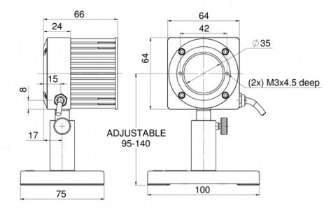 The L50(150)A-LP2-35 is a thermal power/energy laser measurement sensor for high power density and long pulse lasers. It has a 35mm aperture and can measure from 100mW to 50W continuously and to 150W intermittently. It can measure energy from 40mJ to 3000J. The sensor is able to measure high power lasers of up to 4000W by measuring the energy of 0.4 - 4s exposure to the laser. The high damage threshold LP2 absorber covers the spectral range from 0.25 to 2.2μm. The sensor comes with a standard 1.5 meter cable for connecting to a meter or PC interface.