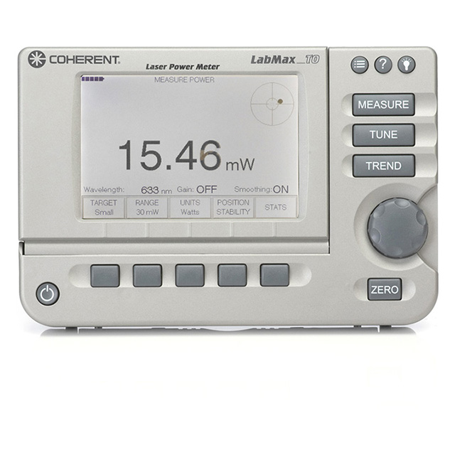 LabMax-TO is a power-only version of LabMax-TOP. LabMax-TO is directly compatible with most Coherent thermal and semiconductor sensors and displays beam position for quick and accurate setup.Laser power meter, graphing, tuning, data logging, USB and RS232 PC interfaces, analog output.