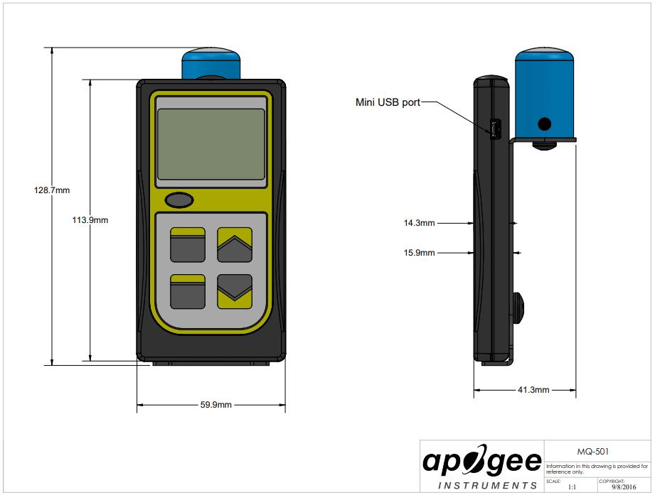 The instrument has sampling and logging modes and will record in mol m ˉ2 d ˉ1 Is the comprehensive daily total amount in units. The sampling mode will record up to 99 manual measurements. The logging mode will turn the instrument on/off and take measurements every 30 seconds. Every 30 minutes, the instrument will average 60 30 second measurements and record the average value into memory. The instrument can store up to 99 average values. Once it is full, it will begin to overwrite the old measured values with new ones. The combined daily total will be recorded from 48 average measurements (over a 24-hour period). The sample and log measurements can be viewed on the LCD screen or by downloading data to the computer, but the combined daily totals can only be viewed by downloading data to the computer. AC-100 communication cable (standard USB cable does not work) and Apogee AMS software are required to download data to the computer.