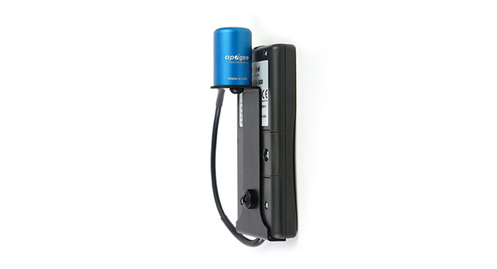 MQ-501 is designed as an easy to use hand-held instrument for spot check and measurement. The instrument includes AM-001 instrument mounting bracket for mounting the sensor on the horizontal surface of the instrument, and approximately 0.17 m of cable to accommodate the length of the bracket. The full spectrum sensor adopts blue enhanced silicon photodiode and customized filter, with a solid self-cleaning sensor housing design, anodized aluminum body and acrylic diffuser. Typical applications include PPFD measurement of plant canopy in outdoor environment, greenhouse and growth chamber, and PPFD measurement of reflection or under canopy (transmission) in the same environment.