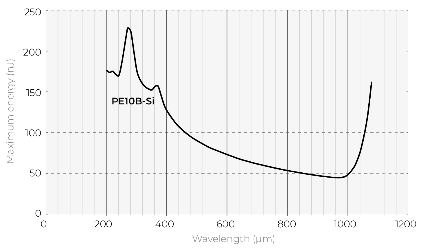 Silicon photodiode-based energy detectors offer pulse-to-pulse energy measurements for VIS-NIR wavelengths. Our silicon absorber makes it possible to measure very low energy down to the femtojoule level.
