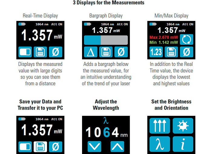 Thanks to its very low noise level of only 10 pW, the PRONTO-SI measures powers as low as 0.3 nW