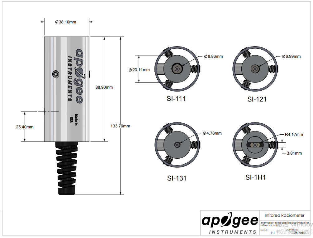 | Response Time | 0.6 s, time for detector signal to reach 95 % following a step change, fastest data transmission rate for SDI-12 circuitry is 1 s |