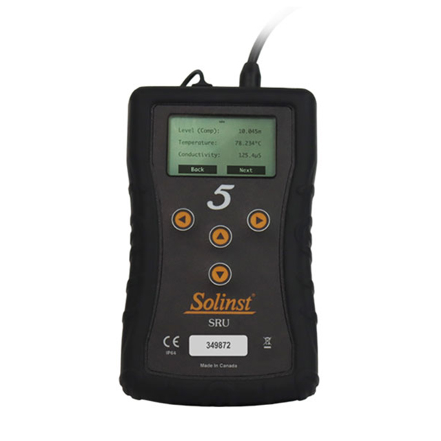The Solinst Readout Unit (SRU) is a field-ready device designed to take and display instant water level readings from a deployed Solinst datalogger, as well as allowing simple download of stored data.